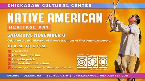 Join us for a day of honoring strong traditions and historical contributions of all First American people during Native American Heritage Day at the Chickasaw Cultural Center. There will be several opportunities across campus to immerse yourself in the celebration of First American heritage.